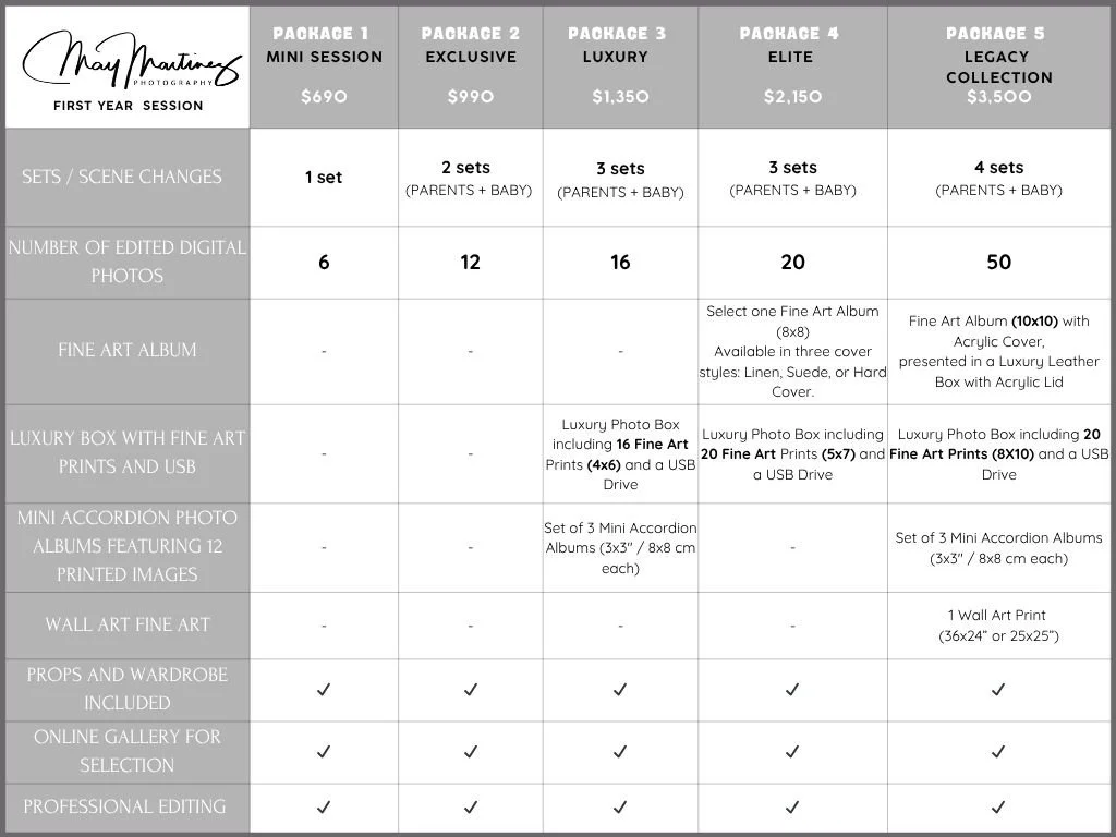 For first birthday sessions, the props depend largely on the ideas and preferences of the mom, If the items are things I already have in the studio, they are included in the package. However, if the session requires more elaborate or custom-made props, there may be an additional charge for purchasing or creating them.